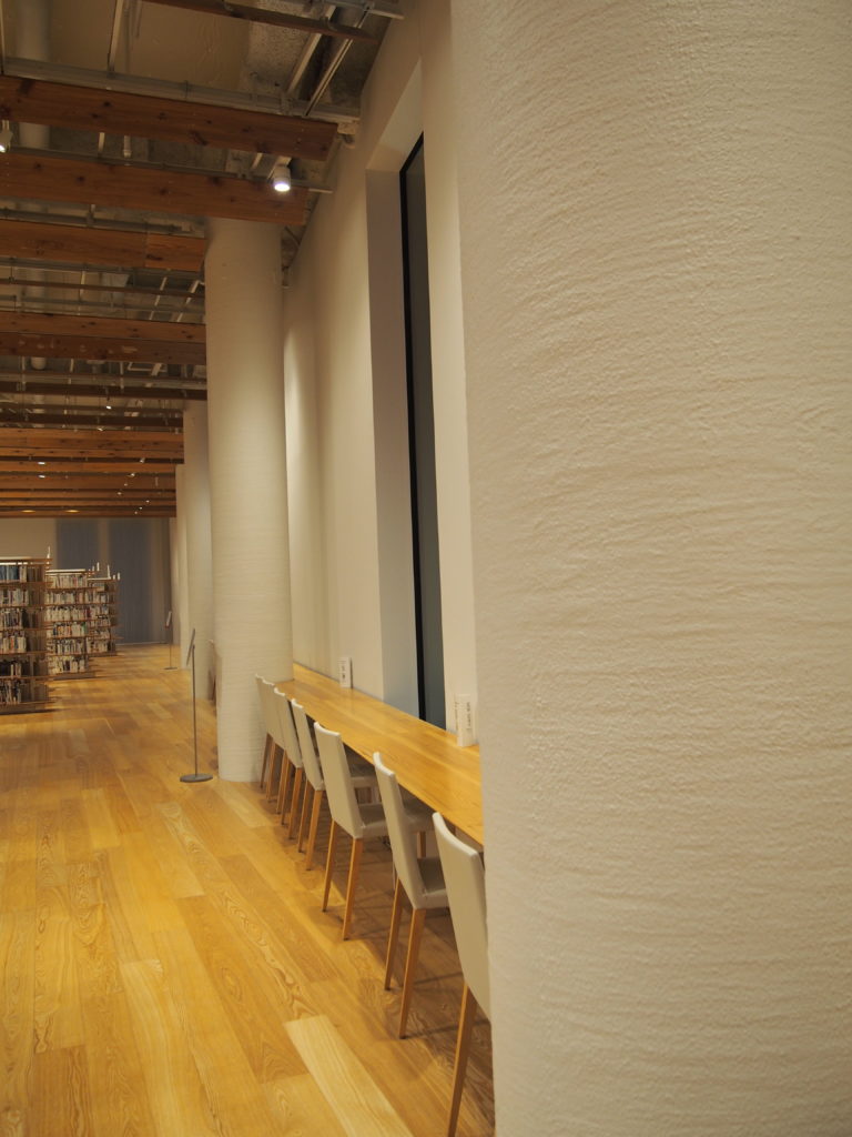 図書館の壁は塗料の柔らかい仕上がり↓