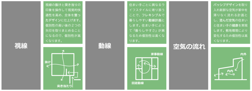 私たちは実際にハウスメーカーで家づくりをしました。その経験から、3つの矢印に影響する要素の中で最も自由度が高いのは「窓」であり、「窓」が重要な鍵になると確信しました。さらに、ハウスメーカーの設計者からはほとんど「窓」の提案や説明がないか、あるいは見た目だけでデザインがされていることにも気づきました。「そんなことないでしょ」と思われるかもしれませんが、私たちの基準ではそうなのです。